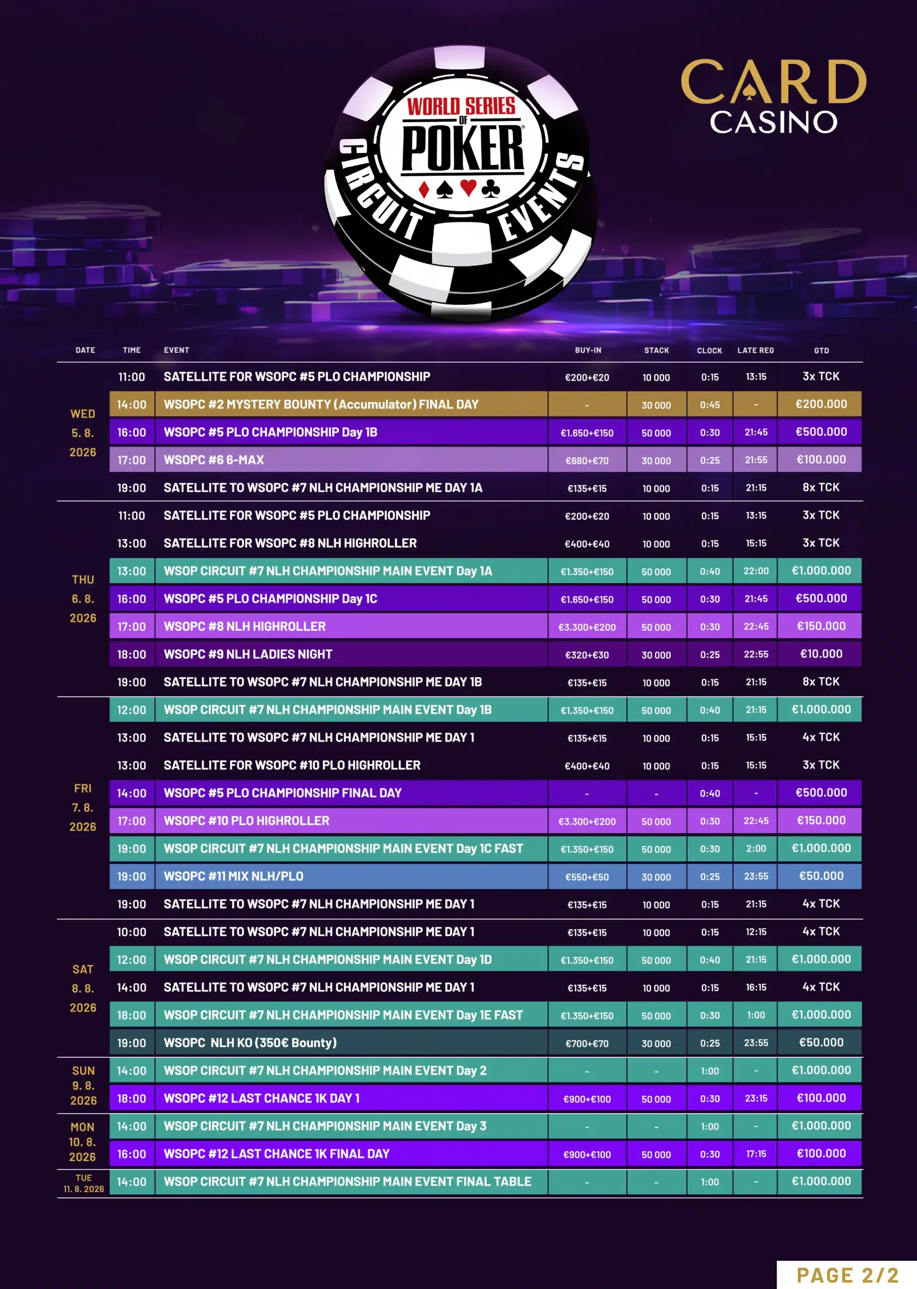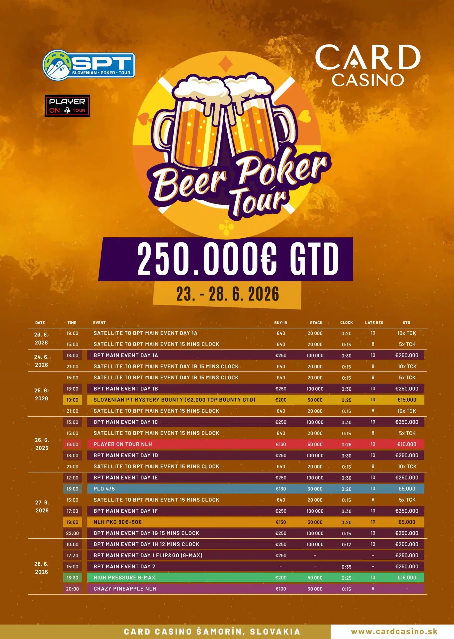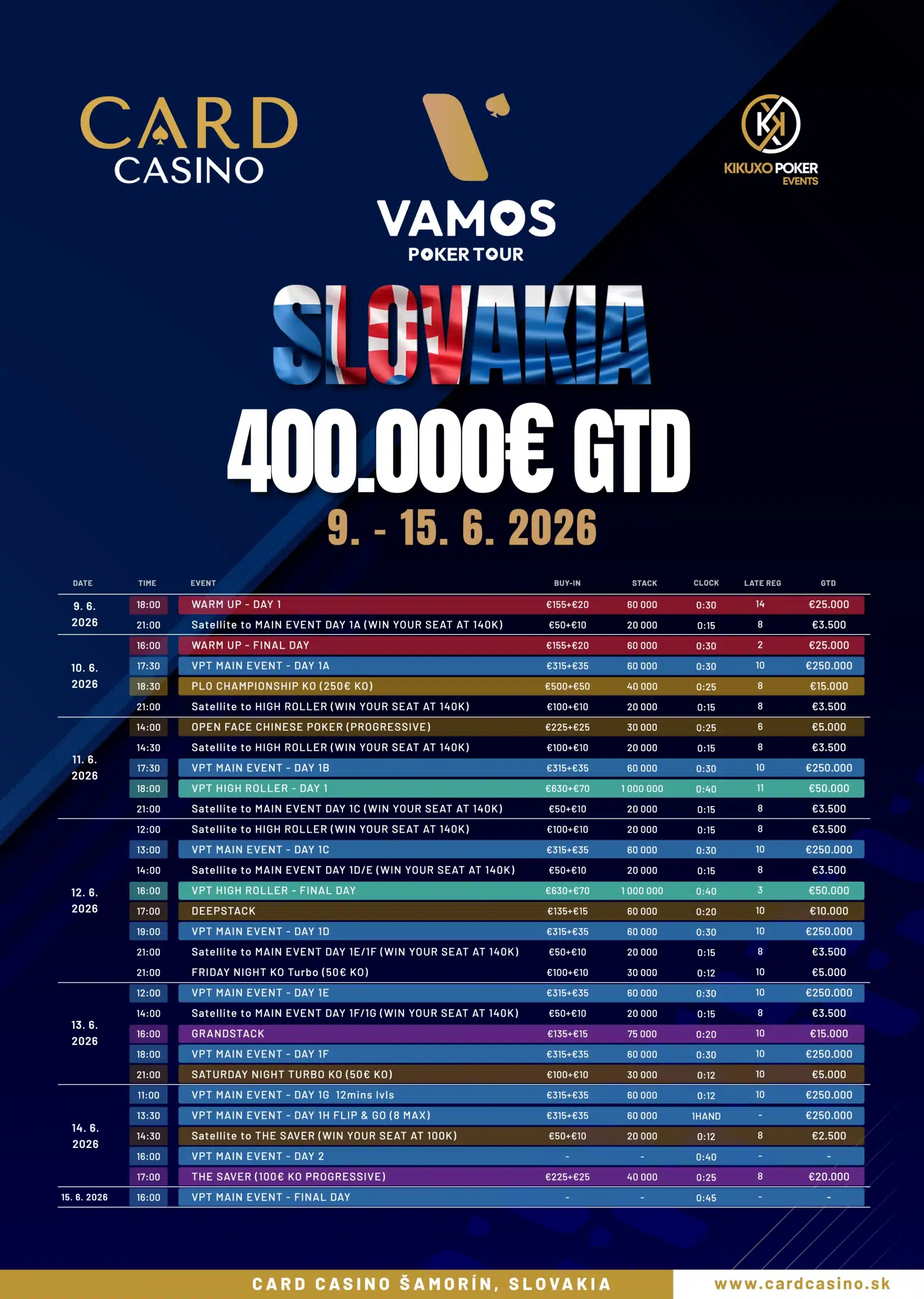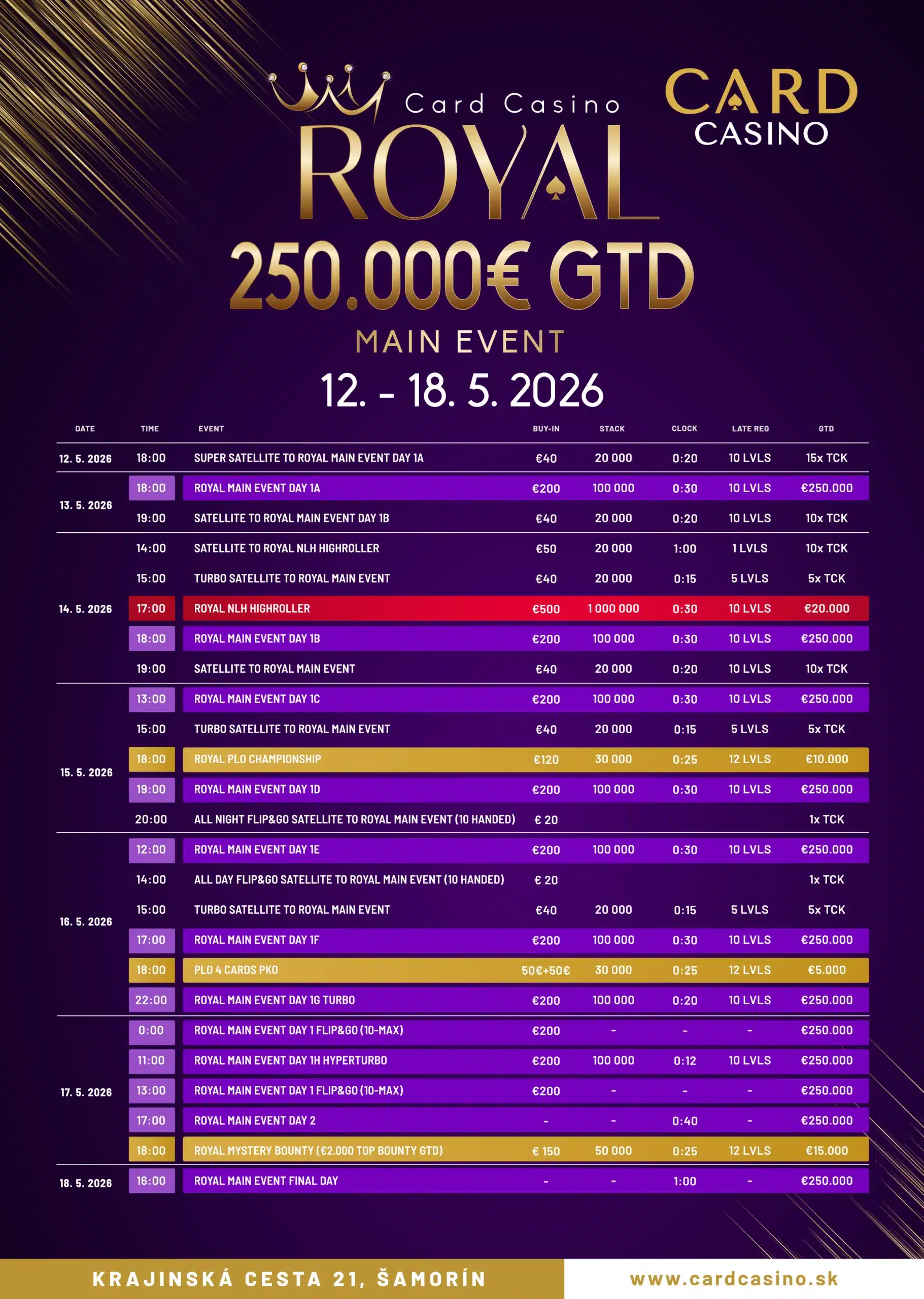 Rok 2025 prinesie nielen návrat osvedčených sérií ako WPT a WSOP, ale aj množstvo nových eventov. Slovensko sa tak opäť stane centrom kvalitného pokrového diania v strednej Európe. Sleduj náš rozpis a nenechaj si ujsť žiadny veľký turnaj!